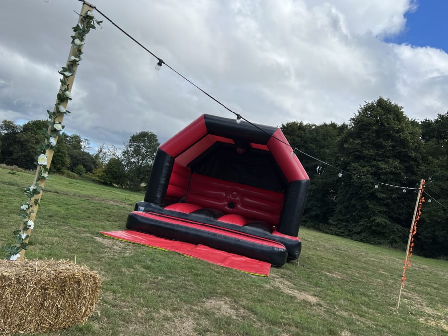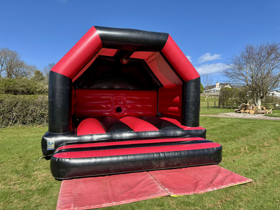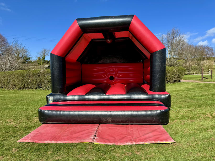 Make your next event unforgettable with our 15ft x 15ft Red & Black Adult Bouncy Castle. With striking red and black colours and a generous jumping area, this adult-sized bouncy castle is perfect for Wedding Bouncy Castle Hire. 15ft x 15ft Red & Black Adult Bouncy Castle in Torbay, Torquay, Paignton, Brixham, Totnes, South Hams, Newton Abbot, Bovey Tracey, Teignmouth, Dawlish, Exeter, Devon. Designed to entertain mixed-age groups, it brings energy and laughter to weddings, corporate fundays, school fetes and family reunions. 🤸♂️