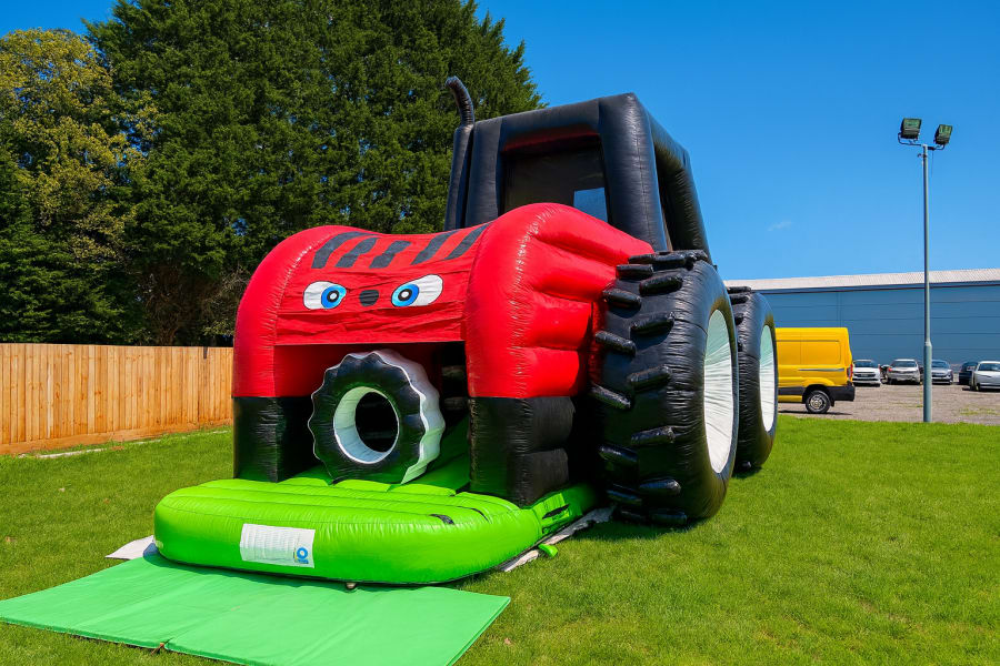 Tractor Bouncy Castle Hire 30ft Tractor Funrun in Torquay, Paignton, Brixham, Newton Abbot, Totnes, South Hams, Teignmouth, Dawlish, Exeter, Devon, Cornwall 🚜🎉